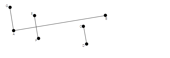 Musisz narysować trzy wskazane odcinki prostopadłe do podanego odcinka AB, następnie zapisz ich oznaczenia literowe i wypisz wszystkie pary odcinków prostopadłych.