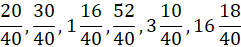 W tym zadaniu musisz zapisać dane ułamki z mianownikiem równym 40.