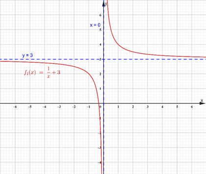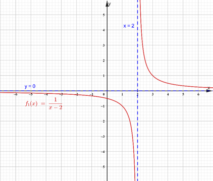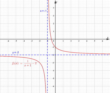 Z rysunków odczytaj asymptoty – pionową x i poziomą y, które są odpowiednio pierwszą i drugą współrzędną wektora przesunięcia funkcji elementarnej