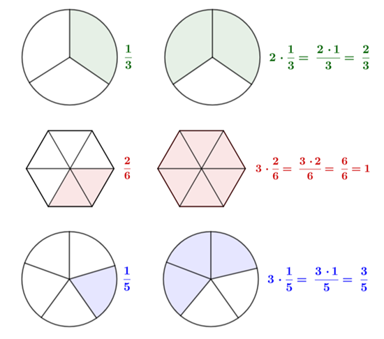 Mnożenie ułamków przez liczbę polega przemnożeniu przez nią licznika i przepisaniu mianownika.