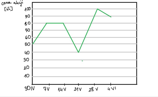 Najpierw wypisz wszystkie daty, o których mowa w zadaniu, potem zapisz, co ludzie zrobili w danym z dniu z pieniędzmi. Na koniec użyj tych danych do stworzenia wykresu.