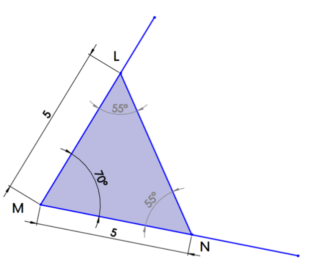 Trójkąt ma dwa boki tej samej długości, co oznacza, że jest trójkątem równoramiennym. Trójkąt równoramienny przy podstawie ma boki tej samej długości. Wiadomo, że jednej kąt ma 70° więc: