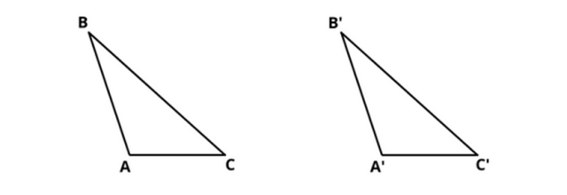 Korzystając z cyrkla i linijki, narysuj identyczny trójkąt, jak ten podany na rysunku.