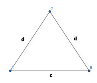 Jest to trójkąt równoramienny o podstawie c i ramionach d.