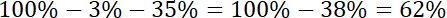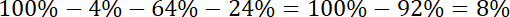 W tym zadaniu musisz podane ułamki przekształcić tak, aby w mianowniku otrzymać 100 – w ten sposób dostaniesz procenty. Następnie znając procenty trzech składników możesz wyliczyć, ile procent zajmuje czwarty składnik.