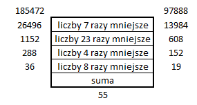Liczba x razy mniejsza, czyli podziel liczbę z piętra wyżej przez x.
