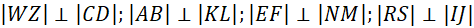 Oznacz jednym kolorem pary odcinków prostopadłych.