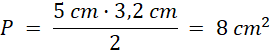 Pole trójkąta to iloczyn długości podstawy i wysokości podzielony na dwa.