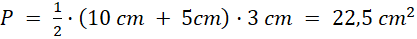 Pole trapezu to suma długości podstaw pomnożona przez wysokość i podzielona na 2.