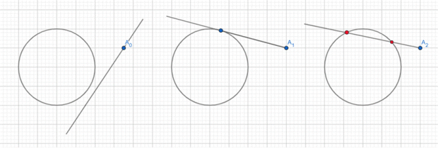 W tym zadaniu musisz narysować okrąg o podanej średnicy i punkt na zewnątrz okręgu oraz poprowadzić przez punkt prostą i podać, ile razy prosta może przeciąć ten okrąg. Rozważ różne sytuacje.