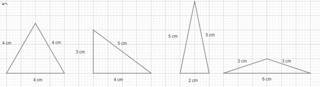 Szukaj liczb, które po dodaniu dają 12. Nie zapomnij o nierówności trójkąta! Suma dwóch boków zawsze musi być większa od trzeciego boku. Narysuj trójkąty o wybranych wymiarach.