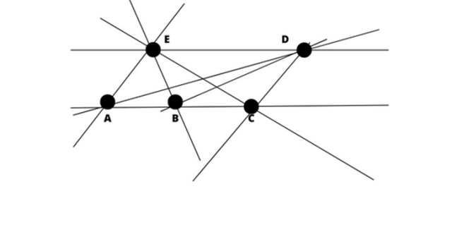 W tym zadaniu naszkicuj trzy różne punkty A, B, C na prostej i dwa punkty nieleżące na niej. Następnie przez każde dwa punkty poprowadź prostą. Ustal, ile prostych można poprowadzić.