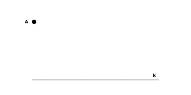 W tym zadaniu naszkicuj prostą k i punkt A leżący poza tą prostą, a następnie zmierz odległość punktu od prostej.