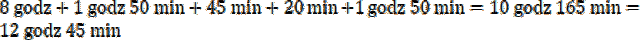 Dodaj do godziny wyjazdu czas zwiedzania, odpoczynku oraz czas dojazdu i powrotu. Każde pełne 60 minut zamień na 1 godzinę.