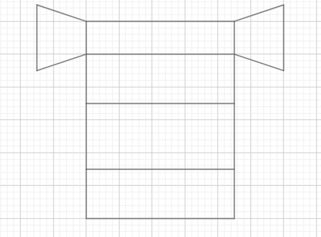 Na początek po drugiej stronie prostokąta narysuj identyczny trapez – jest to druga podstawa. Potem zmierz cyrklem długość ramienia trapezu i narysuj prostokąt o takiej szerokości. Następny prostokąt ma szerokość równą dłuższej podstawie trapezu, a ostatni prostokąt znowu ma szerokość taką, jak ramię trapezu.