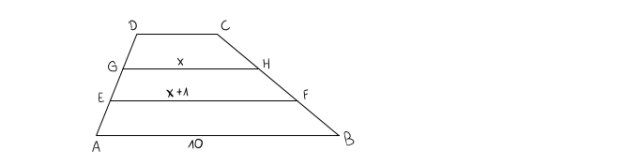 Korzystając z tego, że jeśli mamy dany trapez, to odcinek łączący środki ramion jest średnią arytmetyczną obu podstaw, można zauważyć, biorąc pod uwagę trapez ABGH: