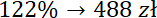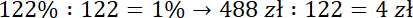 Zauważ, cena bez VAT to 100% ceny tabletu, a podatek VAT to 22% ceny tego sprzętu, więc cena brutto (z VATem) to suma tych wartości, czyli 122%. Oblicz 1% tej kwoty, to znaczy, podziel zarówno procenty jak i cenę przez 122, a następnie pomnóż obie wartości przez 100, by otrzymać 100% ceny, czyli cenę netto.