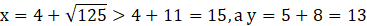 y = 5 + 8 = 13