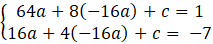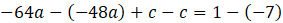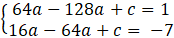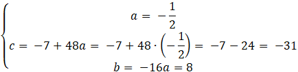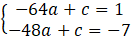 Zredukuj jednomiany podobne, a następnie od pierwszego równania układu odejmij drugie. Wyznacz wartość współczynnika a.Podstawiając wyznaczoną wartość do drugiego równania, otrzymasz wartość współczynnika c.