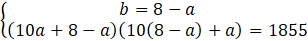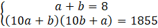 W tym zadaniu musisz znaleźć liczbę dwucyfrową, której suma cyfr jest równa 8, a po pomnożeniu tej liczby przez liczbę dwucyfrową o tych samych cyfrach, ale w odwrotnej kolejności otrzymamy 1855.
