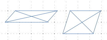 Narysuj dwa równoległoboki o nieprostopadłych przekątnych.