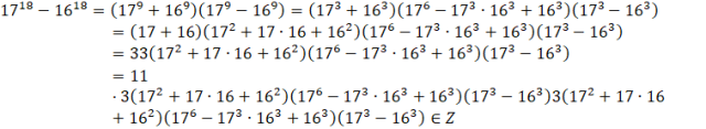 Liczbę można 1718 - 1618 można przedstawić w postaci iloczynu 11 i liczby całkowitej, więc jest ona podzielna przez 11.