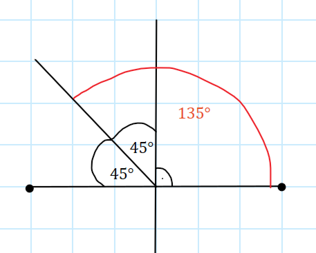 Narysuj bez kątomierza kąt o mierze 135˚. Wykorzystaj konstrukcję symetralnej odcinka oraz dwusiecznej kąta.