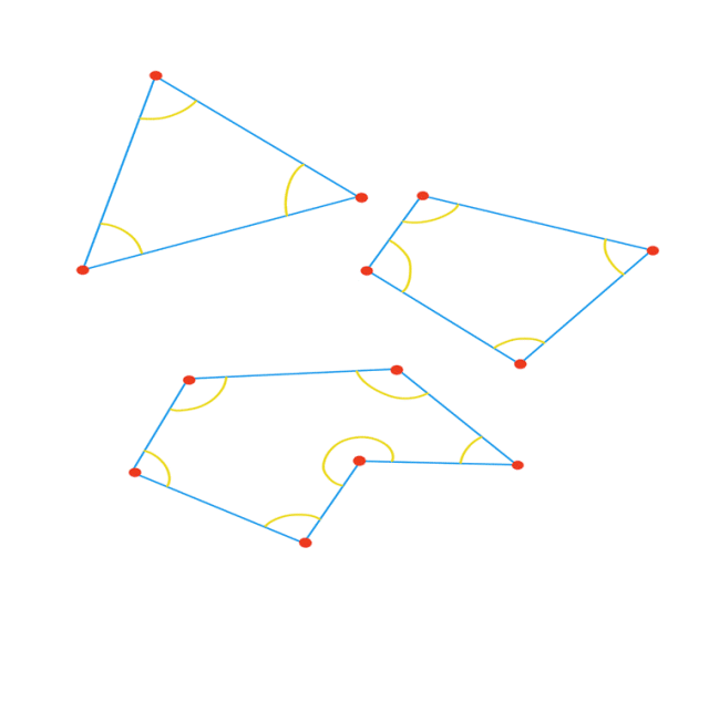 W tym zadaniu musisz zaznaczyć wierzchołki, boki (odcinki łączące wierzchołki) oraz kąty między bokami.