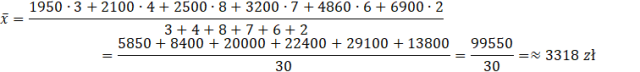 Oblicz średnią miesięcznego wynagrodzenia pracowników. Wynik zaokrąglij do 1 zł.