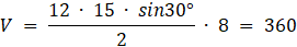 Obliczamy objętość, korzystając z tego, że pole równoległoboku można obliczyć ze wzoru