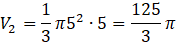 Krysia przesypała piasek z jednej sześciennej foremki do drugiej w kształcie stożka. Sześcienna foremka ma krawędź 5 cm, a wysokość drugiej to 5 cm oraz promień podstawy to również 5 cm. Zaznacz, jaka część drugiej foremki została wypełniona przez piasek.
