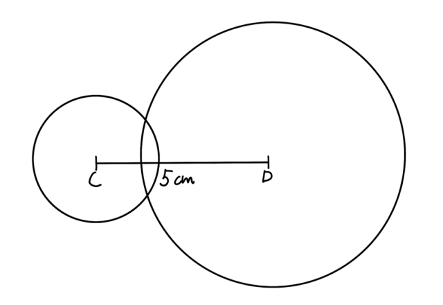 Suma długości promieni obu okręgów musi być większa niż 5 cm.