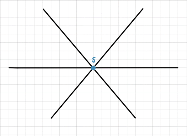 Narysuj trzy dowolne proste, które przetną się w jednym punkcie. Ten punkt jest środkiem symetrii figury.