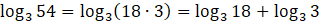 Skorzystaj z dodawania logarytmów o tej samej podstawie. Zapisz liczby logarytmowane w postaci ich iloczynu i rozbij je na sumę dwóch logarytmów.