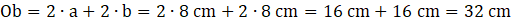 Po podzieleniu pola przez długość boku obliczamy długość drugiego boku, który wynosi 8 cm.