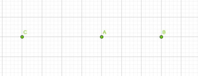 Zauważ, że są dwa przypadki w tym zadaniu. Punkt C po tej samej stronie punktu A co punkt B lub po stronie przeciwnej.