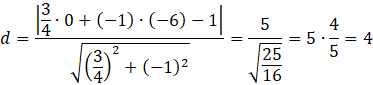 Skorzystaj ze wzoru na odległość punktu od prostej