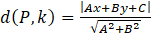 , gdzie A, B, C – współczynniki w równaniu ogólnym prostej, x, y – współrzędne punktu P.