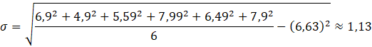 Najpierw zsumuj wartości danych i podziel przez ich ilość tak aby obliczyć średnią arytmetyczną. Następnie oblicz odchylenie standardowe, czyli zsumuj kwadraty wszystkich wartości ze zbioru, podziel je przez ich ilość, odejmij kwadrat średniej arytmetycznej i całość spierwiastkuj.