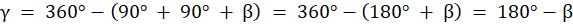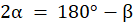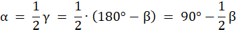 W tym zadaniu oblicz związek między miarami kątów α i β, wiedząc, że ramiona kąta β na rysunku obok są styczne do okręgu.