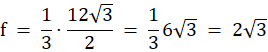 Zauważ, że podstawą ostrosłupa prawidłowego trójkątnego jest trójkąt równoboczny. Skorzystaj z twierdzenia Pitagorasa i wyznacz długość wysokości ściany bocznej. Pamiętaj, że odcinek f stanowi