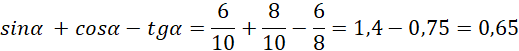 Zatem wartością wyrażenia sinα + cosα – tgα jest liczba: A. 0,65