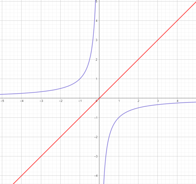 Funkcje oraz y = x na jednym wykresie: