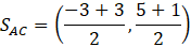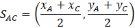 Współrzędne środka odcinka łączącego wierzchołki A i C możesz policzyć ze wzoru:
