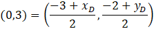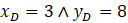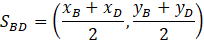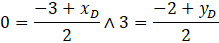 Następnie zapisz współrzędne środka odcinka łączącego punkty B i D przy pomocy wzoru i przyrównaj do wyliczonego punktu przecięcia się przekątnych:
