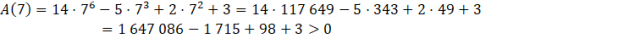 Jeśli 7 jest pierwiastkiem któregoś z podanych wielomianów, to po podstawieniu za x tej liczby dostaniesz 0. Wielomiany oznaczane będą literami odpowiedzi. Nie zawsze musisz obliczenia prowadzić do samego końca. Jeśli widzisz, że wyrażenie będzie zdecydowanie dodatnie lub ujemne, to możesz poprzestać w tym momencie.