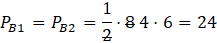 Dwie ściany boczne tego ostrosłupa będą trójkątami prostokątnymi o przyprostokątnych o długości 8 (krawędź podstawy) oraz 6 (krawędź boczna prostopadła do podstawy. Więc pole każdego takiego trójkąta będzie wynosiło: