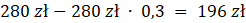 Oblicz cenę spodni po rabacie, wiedząc że cenę 280 obniżono o 30%.