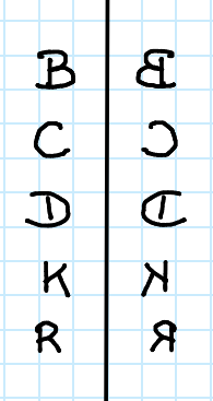 Narysuj podane litery odbijając symetrycznie ich obrazy względem dowolnej prostej.