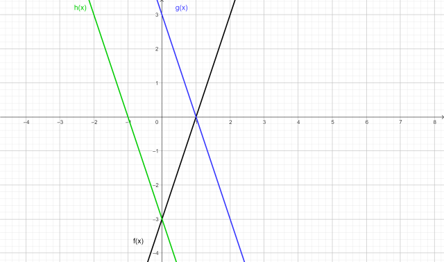 Aby utworzyć wykres funkcji g(x), wykres funkcji f(x) odbij symetrycznie względem osi OX, a żeby utworzyć wykres funkcji h(x), wykres funkcji f odbij symetrycznie względem osi OY.